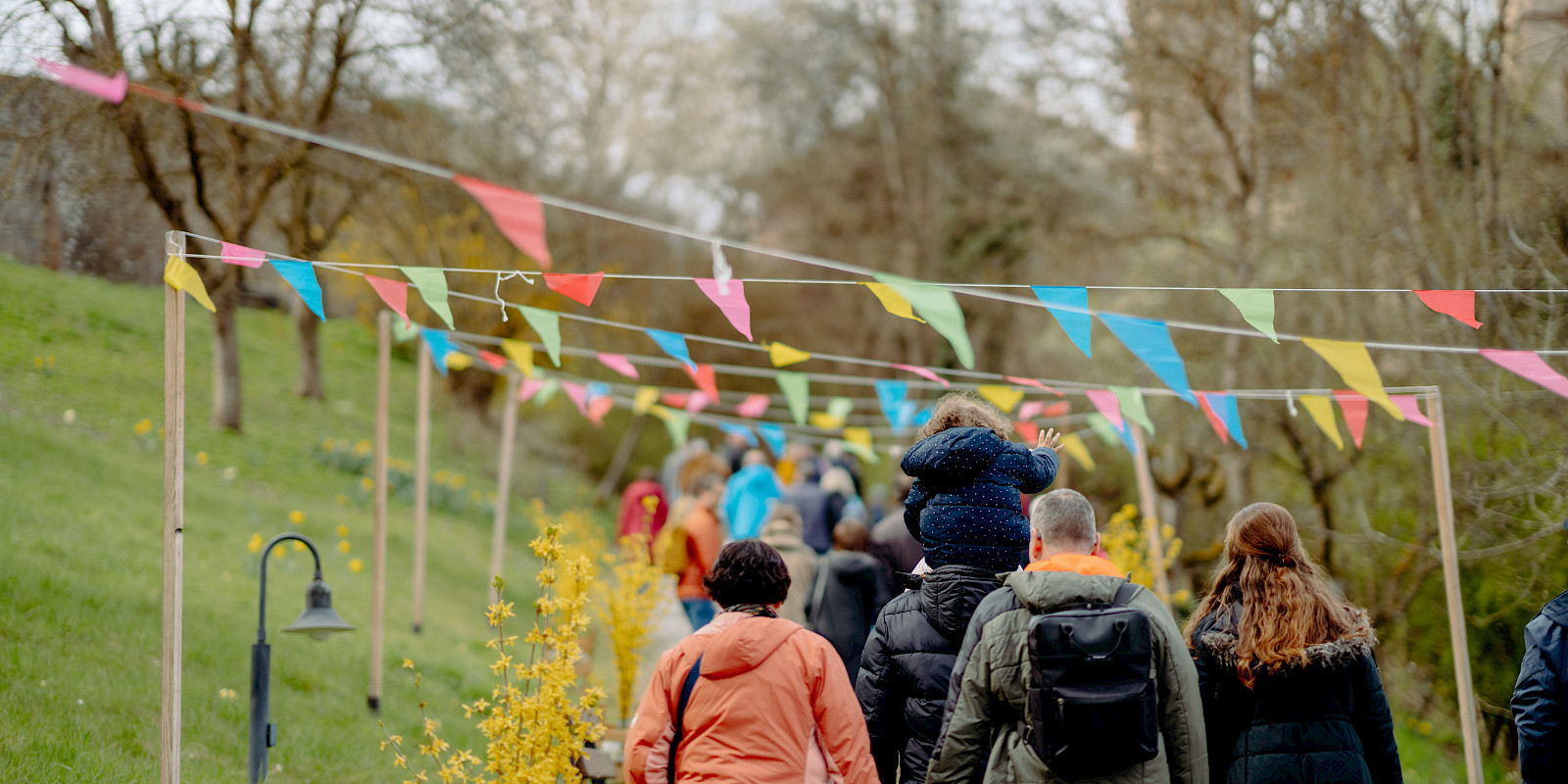 Der Kinder-Osterweg verläuft parallel zum Weg für die Erwachsenen, sodass Familien ihn gemeinsam erleben können. Dieses Jahr bekam jedes Kind ein Heft, in dem die Ostergeschichte – vom Leiden bis zur Auferstehung Jesu – erzählt wurde. An jeder Station konnten die Kinder in dieses Heft einen passenden Aufkleber einkleben.